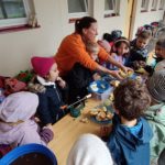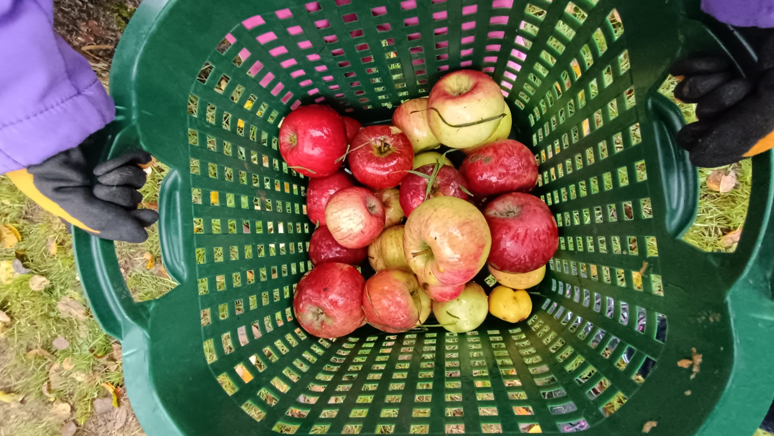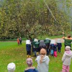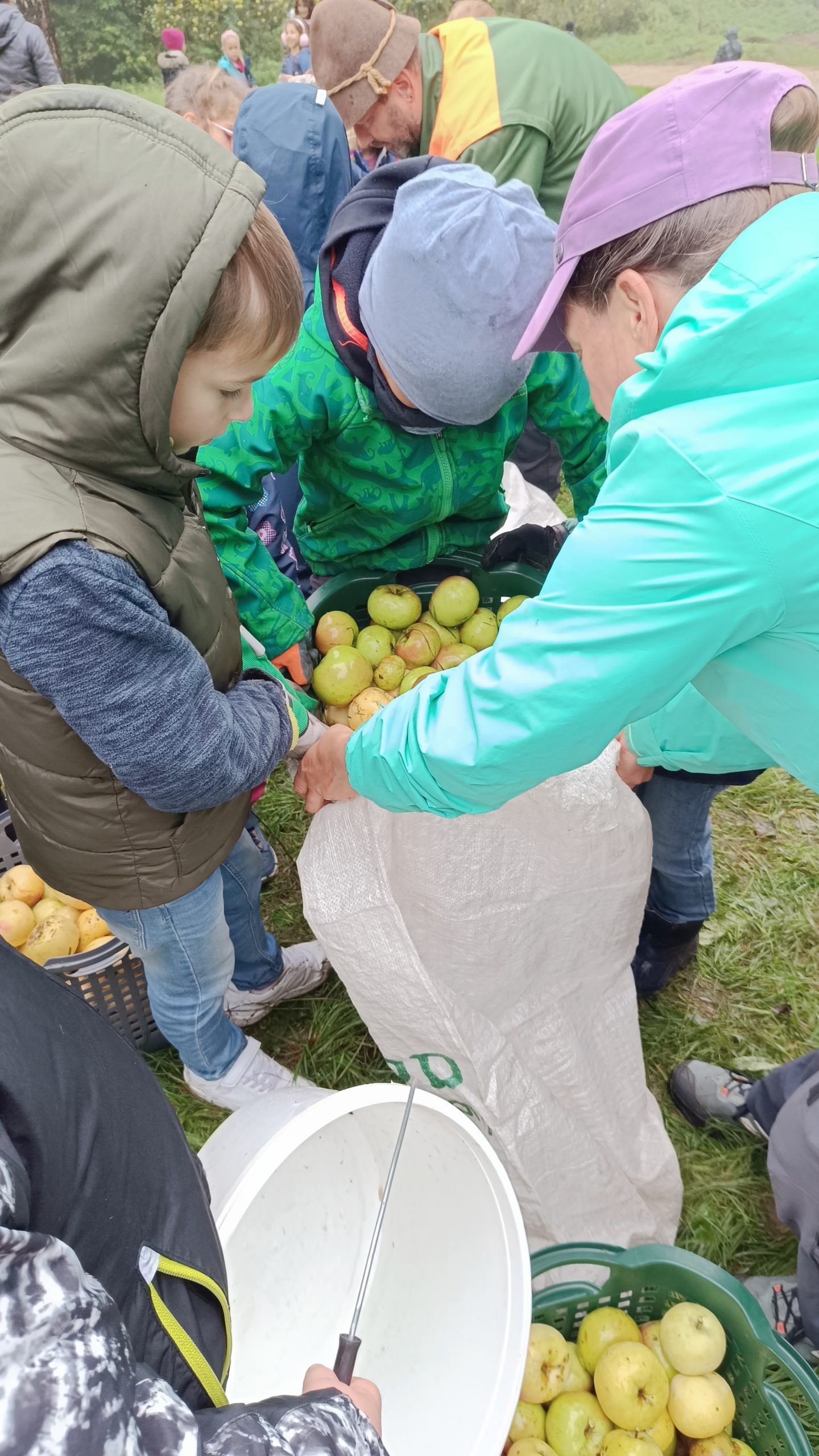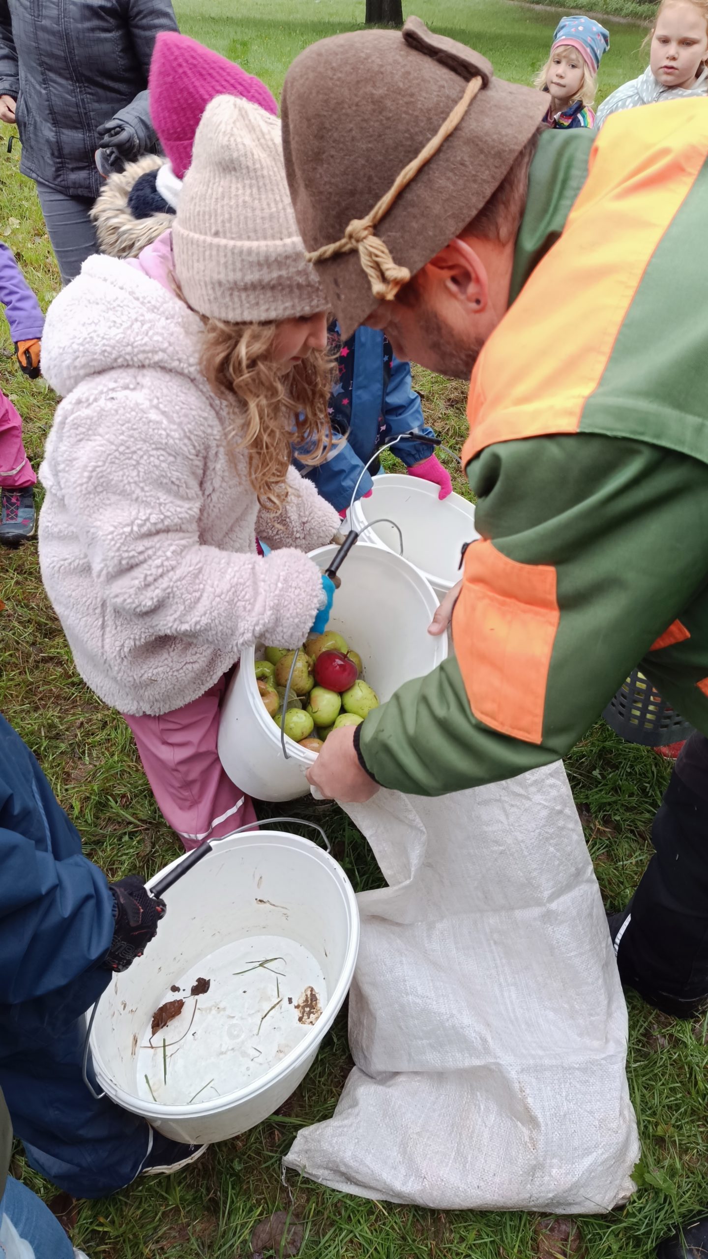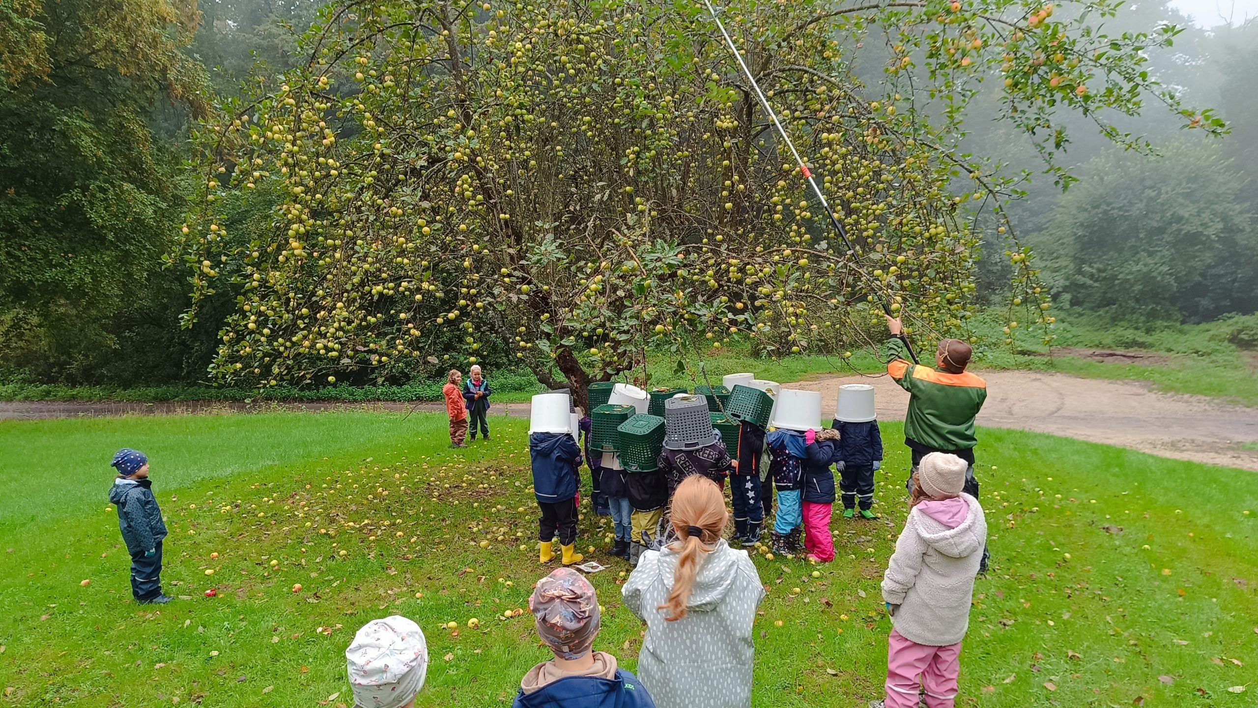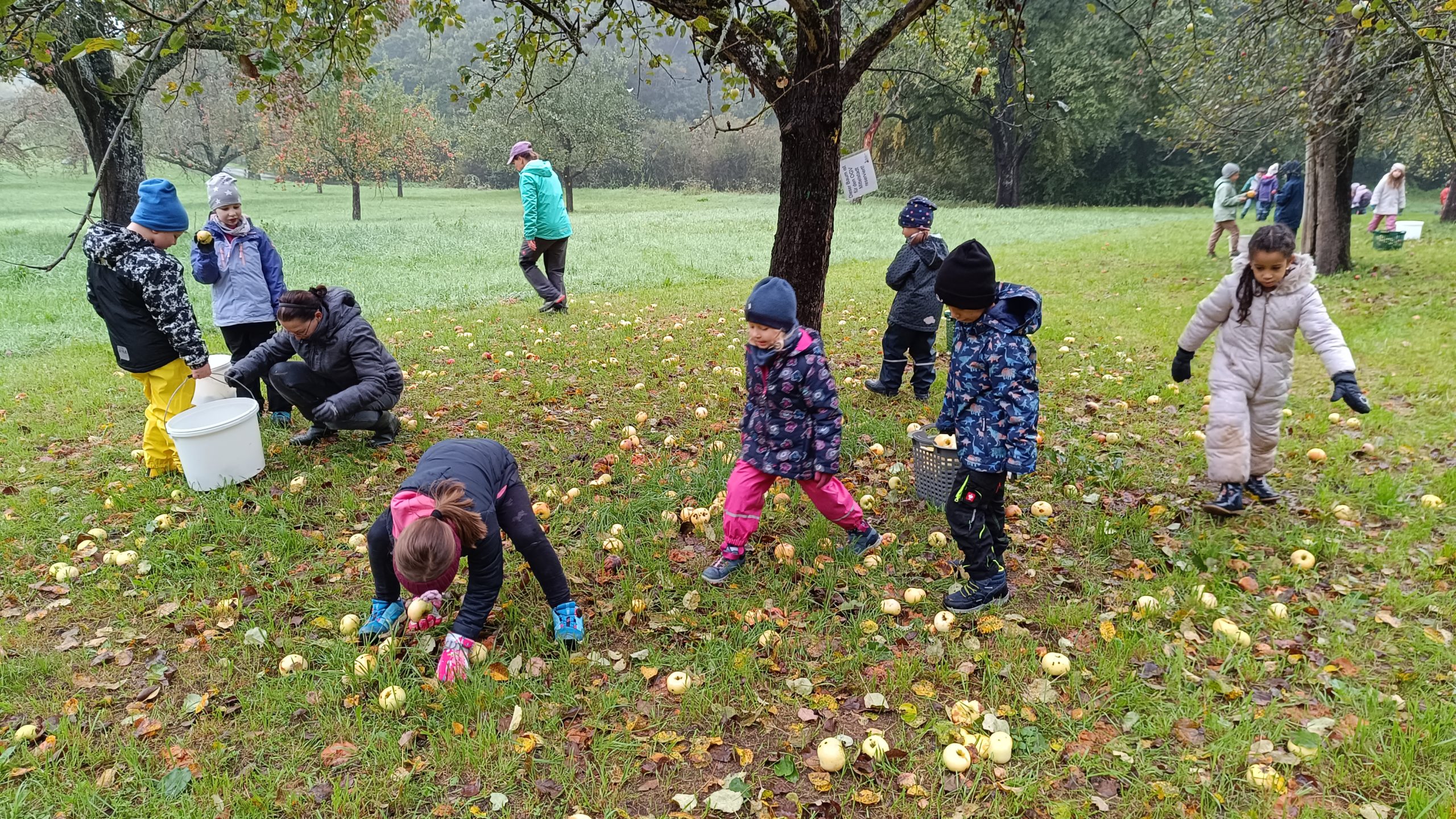 Am Freitag, den 26. September war es mal wieder soweit: der Obst- und Gartenbauverein Mittelstadt hat unter der Leitung von Cornelia Weigold und Bianca Oswald mit den Klassen 1a und 1b der Grundschule Mittelstadt einen Apfelsafttag veranstaltet. Gemeinsam ging es um 8 Uhr los zur Apfelbaumwiese; auf dem Weg dorthin waren alle begeistert von den Ziegen am Wegesrand. An der Wiese angekommen, erzählte Frau Oswald einiges rund um den Apfel und die verschiedenen Sorten, dann ging es auch schon los mit dem ersten Aufsammeln der Äpfel. Damit es noch mehr Äpfel zu sammeln gab, wurden die Äste kräftig geschüttelt, dabei durften die Kinder sich mit dem Eimer über dem Kopf unter den Baum stellen, das war ein großer Spaß für alle. Zurück an der Schule begann der zweite Teil der Aktion: Zunächst durften die Kinder der Klasse 1a von jeder Apfelsorte ein Stück probieren und Unterschiede herausschmecken, danach ging es ans Äpfel schneiden, damit sie später weiterverarbeitet werden konnten. Die Klasse 1b war in der Zwischenzeit mit „Äpfel waschen“ und diese anschließend „in die Häckselmaschine werfen“ beschäftigt. Dann wurden die gehäckselten Äpfel in einer Presse zu Apfelsaft bzw. Süßmost gepresst. Später tauschten die beiden Klassen ihre Aufgaben. In der großen Pause durften alle Kinder der Grundschule den leckeren Saft probieren. Die Kinder der ersten Klassen konnten nach der Selbstverkostung eine Flasche Saft zum Probieren mit nach Hause nehmen und waren total stolz, dass sie den Saft selbst gemacht haben.