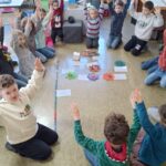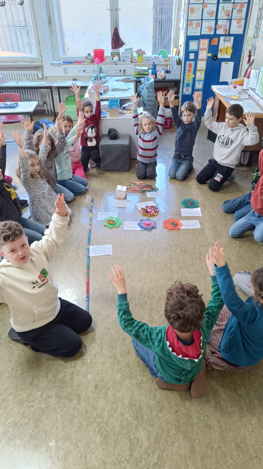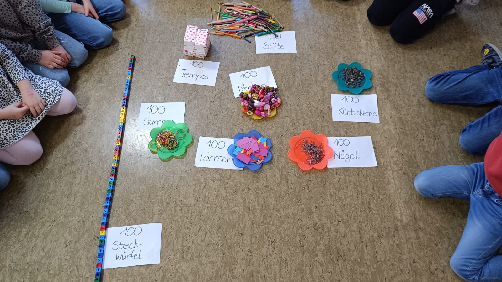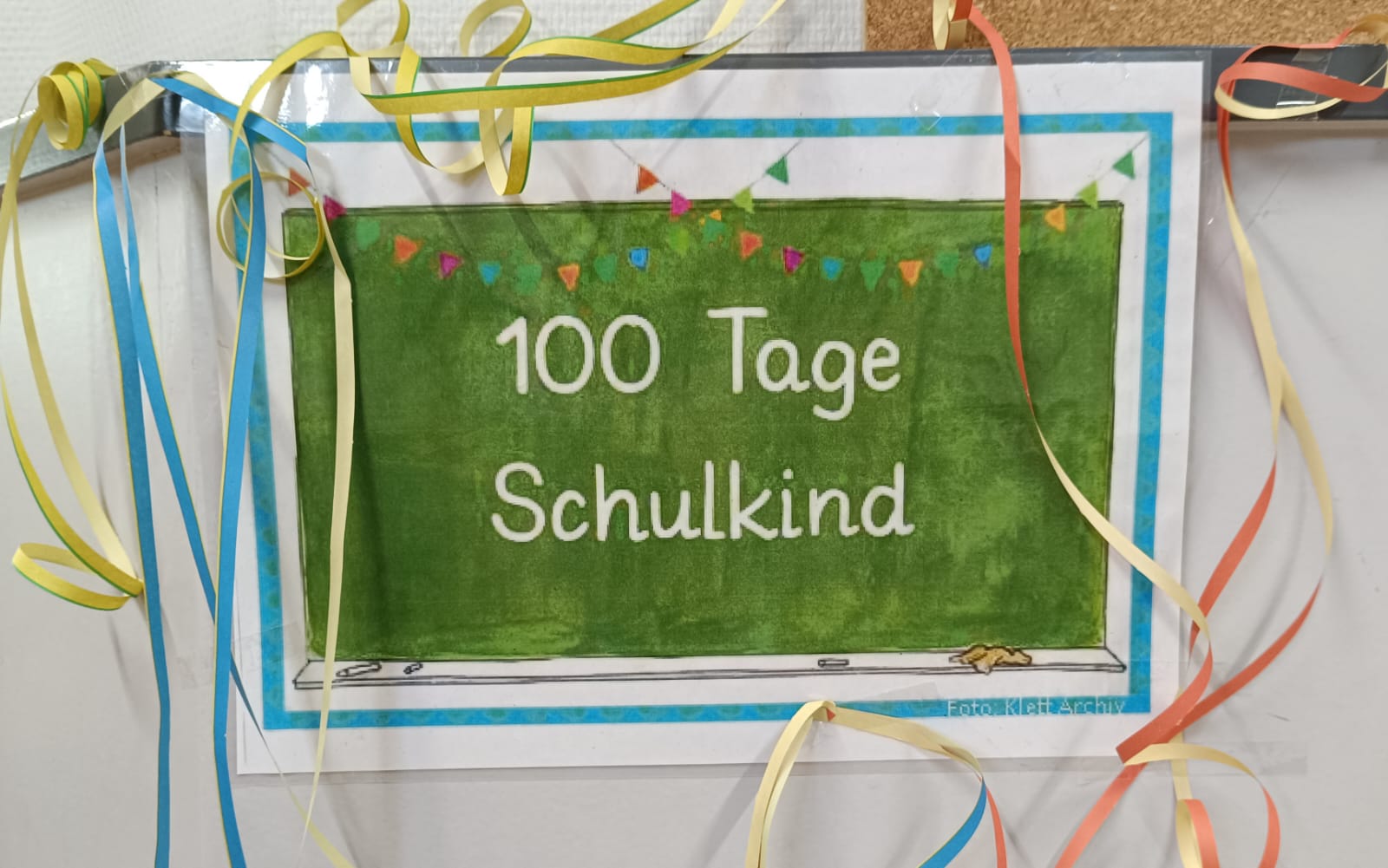 Das muss doch gefeiert werden! Natürlich ist der Tag immer ein ganz besonderer: der 100ste Schultag für die Erstklässlerinnen und Erstklässler. Bereits die morgendliche Begrüßung mit Luftschlangen und Motivationsbild führte alle in den Tag ein. Und dann wurde gezählt: Von einhundert Steckwürfeln über Perlen bis hin zu Stiften und Gummiringen. Denn die Zahl 100 ist ja eine ganz große Zahl. Und damit nicht genug: Die Kinder durften einhundert Wörter in eine Liste schreiben, schließlich können sie bereits richtig viele Wörter schreiben. Und der Abschluss der kleinen Feier machte ein gemeinsames Foto mit selbstgebastelten 100er-Brillen. Da gab es zuhause einiges zu erzählen.